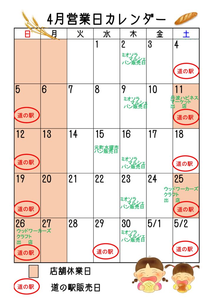 天然酵母パン店4月営業日のお知らせ